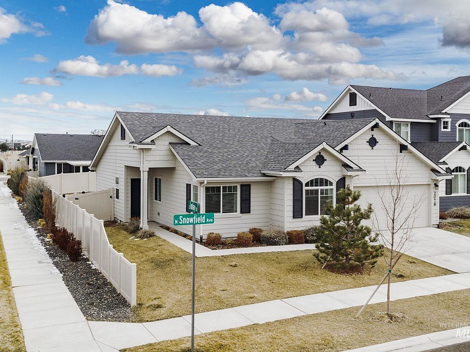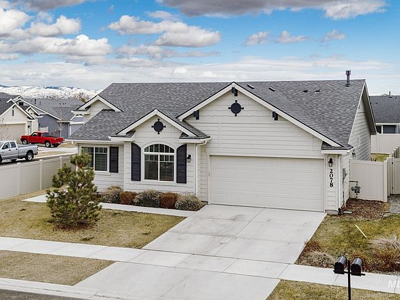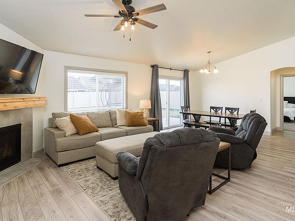 Charming home on a corner lot in desirable Sterling Ranch Subdivision in Kuna. Very popular and loved Collins model by Coleman Homes has an inviting open living space with split bedrooms. Gorgeous kitchen with white cabinets, full back splash, granite counters, gas stove, pantry and stainless steel appliances (all appliances included). Durable LVP flooring throughout and only carpet in the bedrooms. Aesthetically modern colors throughout with light walls and gray trim and doors. Custom mantel over the corner fireplace. Enjoy your east facing large backyard with a HUGE 10x30 concrete patio fully fenced, sod and sprinklers. Community pool, common areas and playground. Location offers great access for easy commute to Meridian and Boise, shopping and schools. Move in ready! Welcome home! BTVAI