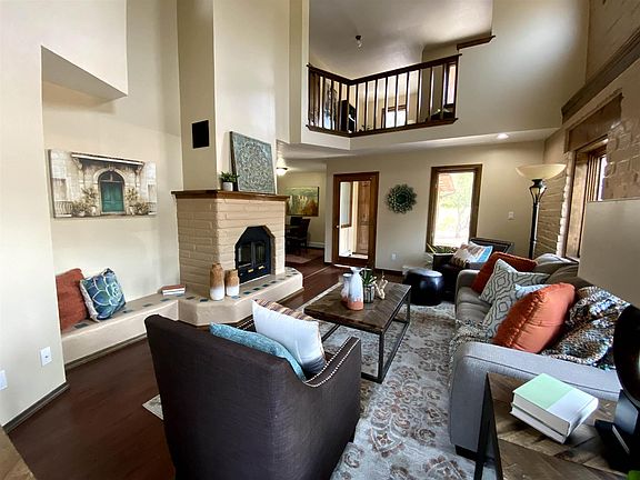 Check out a house you probably never knew was even there! Located in the downtown area, close to all the amenities Los Alamos has to offer-restaurants, stores, breweries, Ashley Pond and all the events that go on there, Starbucks, public library, Senior Center and more. Hidden among the pine trees, you have probably driven past this home many times and didn't see it. So privacy is a feature. Outside, wood and stucco siding, south-facing driveway for good winter melt and northeast facing deck that sits in the shade all day long, for cool outdoor summer living. Fenced yard and 2-car garage. Tromb wall, double pane windows and energy efficient stove insert in fireplace w/blower all help with the utility bills. Inside, lovely laminate flooring and new carpet throughout house. High ceiling in living room. Dining room is light and bright. Kitchen has new farm sink and stainless steel appliances and small center island and lots of cabinetry. Powder room, laundry closet and primary bedroom suite on ground floor. Upstairs is a nice loft providing a second living space/office, two bedrooms and a full bathroom. Ceiling fans in every bedroom and living room. Skylights bring in lots of light, but tall trees provide comfort in the summer months. Extended two-car garage and an abundance of extra storage throughout the house. Home and pest inspections w/list of repairs on file.