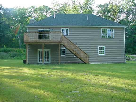 Unique bilevel with spacious master suite with walking closet and whirlpool tub beautiful granite countertop in kitchen with stainless appliances hardwood floors , fireplace, 9' ceilings on lower level with 9' x 8' garage doors and walkout. large deck and concrete sidewalks and patio.