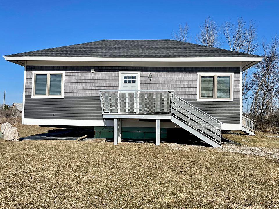 Modern, sophistication. This one of a kind fully furnished pod is awaiting you. This innovative home has it all; radiant in floor heat, custom kitchen cabintry, unparalleled custom steel countertops, pocket doors, even an oversized doorwall, extending your living space to a sleek innovative outdoor retreat with plenty of space for entertaining. The exterior low maintenance materials will make this pod enjoyable for years to come. Within walking distance to community ball fields, library, grocery and restaurants. Six miles to Black Lake.
