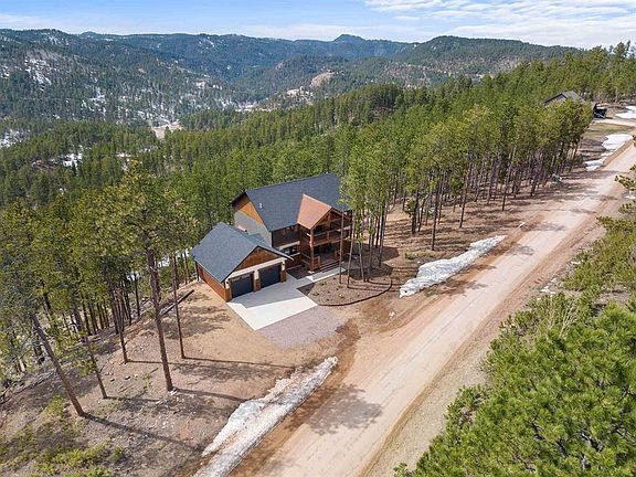Listed by Scot Munro 605-641-6482 or Heath Gran 605-209-2052 with Great Peaks Realty. Endless views surround this spacious home which is situated on 8.53 acres in Paradise Acres. The home was thoughtfully built with a keen eye for detail, and will be perfect for your next home or getaway. Fresh landscaping, a 2-car garage with a 30 amp RV hook-up, and a Generac whole-home generator enhance the exterior of the home. As you step inside, you will be awestruck by the endless list of features that add appeal. Create your favorite meal in the kitchen equipped with an oversized granite island, single basin stainless steel sink, under cabinet lighting and stainless steel GE Profile appliances. Stay cozy by the fireplace with live-edge hearth, or step out from the dining room to the partially covered back deck. Relax in the master suite with tiled step in shower, dual sinks, and deck access. Two additional bedrooms are found upstairs, plus there is a 4th oversized bedroom downstairs. Also downstairs, unwind in the spacious family room with wet bar, and walk-out access to the patio.