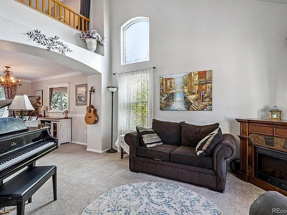 Welcome Home to this beautifully maintained and thoughtfully upgraded property backing to a serene greenbelt. Step inside to a welcoming foyer and soaring vaulted ceilings that create a grand, open feel. The gourmet kitchen features granite countertops, a gas range with double oven, and a triple-filtration water system with softener. Enjoy cozy evenings by the gas fireplace in the living room, accented with stone and custom built-ins. Upstairs, the primary suite boasts double doors, vaulted ceilings, a spacious 5-piece bath with soaking tub, and a large walk-in closet. Gorgeous oak wood floors span the main level, with wood flooring in the loft upstairs and upper bedrooms. The partially finished basement offers incredible flexibility—complete with a wine cellar, wet bar, Murphy bed, and great storage. Step outside to your private backyard oasis featuring mature trees, a stone fire pit, water feature, flagstone walkways, and vibrant landscaping including rose bushes and tulips. The backyard also has gate access on both sides, a doggy door, and a sprinkler system. Additional highlights include: newer triple-pane windows (excluding basement), tankless water heater, attic fan, formal living and dining rooms, south-facing driveway, 3-car garage with attic storage, newer garage door springs, and a 2016 Class 4 impact-resistant roof. A short stroll away, you'll find downtown Parker’s vibrant amenities—including the Sunday Farmers Market, library, PACE Center, charming shops, and local restaurants. Enjoy easy access to year-round community events, all within walking distance. This home has been lovingly cared for and it shows—schedule your tour today!