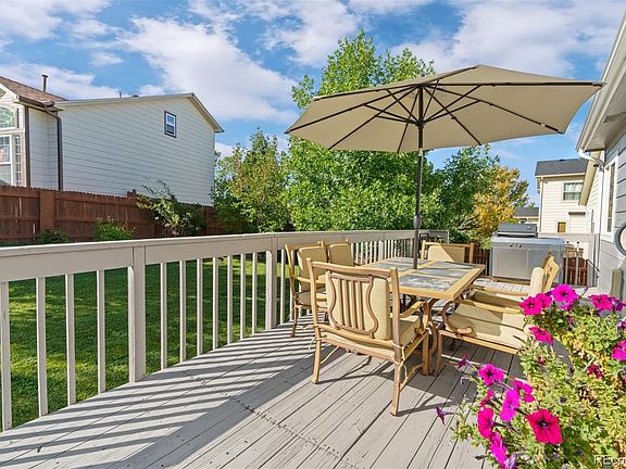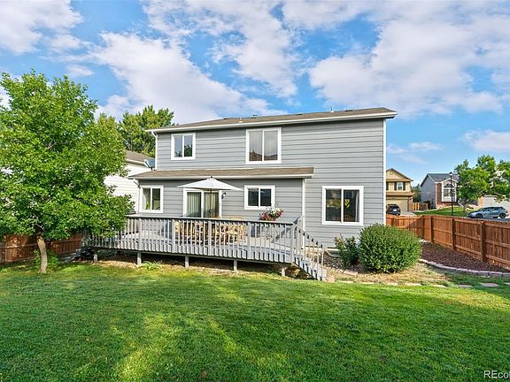 This rare 4 bedroom upstairs, light and bright home, is located on a corner lot on a quiet cul de sac and just steps from the trailhead to Pioneer Park and Lookout Park Public Pool. Kids enjoy a short walk to Timberline, Thunder Ridge, and Eaglecrest. New paint inside and outside at this property and new flooring in this open concept eat in kitchen/living area with stainless steel appliances. Perfect for indoor outdoor living with easy access to the large deck and gorgeous fully fenced back yard. Laundry area is on the main level. The upper-level hosts all 4 bedrooms. The primary suite boasts ample room for a king size bed, dresser, a seating area with walk in closet. En suite 5-piece bath with storage and abundant natural light. The finished basement is a perfect flex area with an area for an entertainment center, pre wired for surround sound. Basement can additionally be used for a combination gym, an office, or a craft area. Easy to wall in an additional bedroom and put in an additional bath with bathroom rough in. Basement also boasts an additional large storage area with shelving. Also included are Nest smart thermostat, smart garage door, video doorbell and motion detection video in the back yard, with security system installed. This home is located in the award winning Cherry Creek School district and is only a 5 minute walk to Timberline Elementary School! Close proximity to parks, an abundance of shopping, dining, entertainment, & public transportation. Minutes to Home Depot, Southlands Shopping Mall, Movie Theater, Bad Daddy’s, Mt Fuji Sushi, Legends Coffee, King Soopers, Walmart, medical, banks, and (and ice skating in the winter months). A short 3 minute drive to Pioneer Park and Lookout Park Pool! Quick possession available.