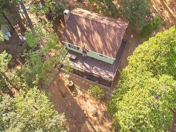 This classic mountain cabin is the perfect getaway. Surrounded by beautiful pine trees on a well kept and usable property, this cabin has a 5 year old roof, brand new composite windows and an updated deck. The main floor opens to the living dining and kitchen, then there is one full bath and bedroom. Heading up stairs there are 2 large bedrooms with vaulted ceilings and a hallway full bath. The property has a street level parking spot and a dirt road that allows you to park right next to the side entrance near the deck. Come see this perfect mountain cabin today!