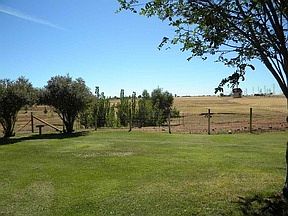 Setup for animals with good horse fencing. Very bright and airy home,very open, large master suite and bath, large kitchen and dining area, plus laundry room. Vaulted ceilings through out, lots of windows to enjoy the outdoors. Almost full length covered deck to the back overlooking the backyard and the pasture area for the horses. 20x40 barn is setup so one end can be used as garage, the other for hay storage and feeding. The barn has 10x40 awning. There is also 10x20 shelter for the horses. Hot fence around the barn area.