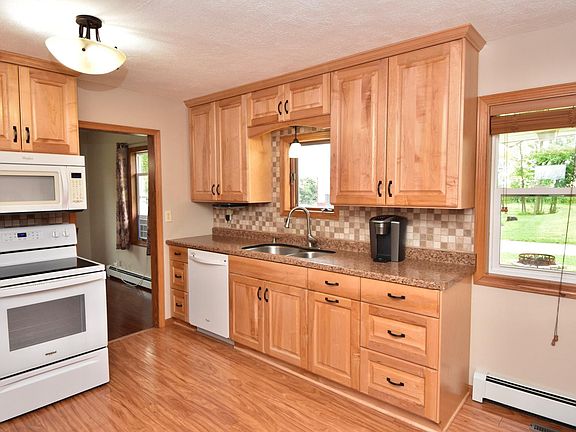 This fantastic ranch-style home offers plenty of space and is located in a rural setting. It features 3 bedrooms on the main level, including a master suite with a large bathroom and walk-in closet, as well as a remodeled kitchen and bathroom plus new shingles and boiler.. Additionally, there's a huge mudroom, a barn with new metal, a 24x24 garage, and a 14x14 pump house with new shingles.