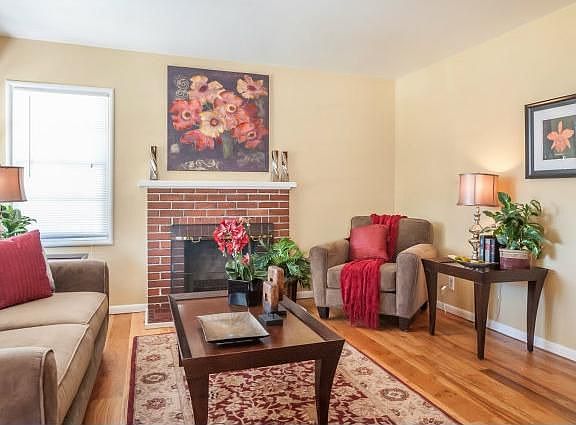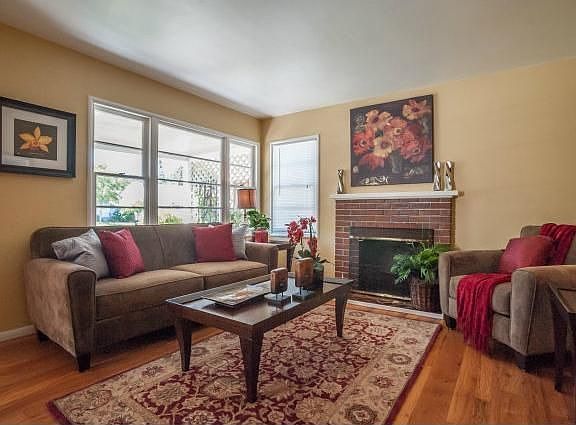 Picture-Perfect San Carlos! Enjoy the landscaped lawns from your charming front porch or the secluded backyard throughout the seasons. Spacious living room and eat-in kitchen open to formal dining room. Light-filled bedrooms provide space to customize this home to your lifestyle. Attached 1-car garage opens into kitchen and has laundry area with washer & dryer and storage spaces. A must-see!