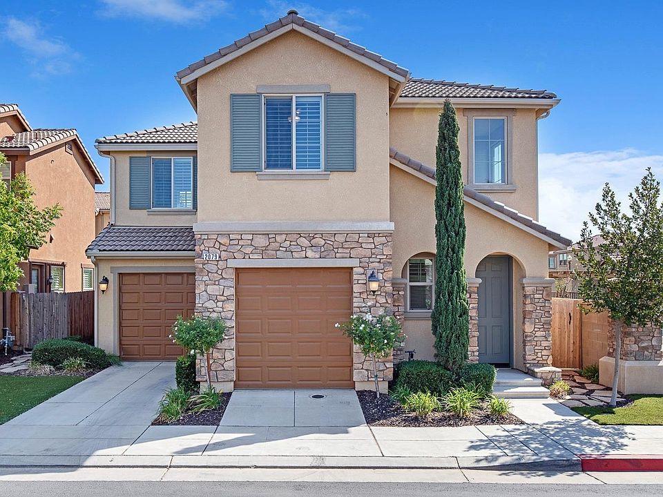 Welcome to The Heights on Copper, located in the highly desirable Clovis North School District. Once you enter the gates, you will quickly notice the home is perfectly situated next to the stunning pool area! This beautiful home features soaring ceilings in the foyer area, nice plantation shutters throughout, and did I mention OWNED solar? The lovely living room flows nicely into the chefs kitchen, which boasts: stainless steel appliances, gas stovetop, lovely granite countertops, nice center island, and ample amount of cabinets. There is also a nice size storage room/ mud room. Upstairs you will find a spacious loft area (that can be converted into a 3rd bedroom), guest bedroom with walk-in closet, laundry room and the owners suite. The owners suite is spacious with private access to the balcony. The gorgeous bathroom has dual sinks, a huge walk-in shower, and large walk-in closet. The backyard oasis has been meticulously landscaped and perfect for entertaining. This one will go fast, so make an appointment today!