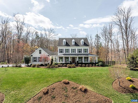 Situated on an elevated Glenmore estate homesite of well over an acre, this lovingly cared-for classic Virginia farmhouse will not disappoint! Thoughtfully designed open concept floor plan, sun drenched rooms, exceptional millwork throughout, expansive wrapped front porch, and featuring a rare combination of comfort and elegance! The heart of this beautiful home is the finely appointed chef's kitchen with enormous island, extensive custom painted cabinetry, high end stainless appliances, apron front farm sink, and plenty of prep and cooking space for even the most discerning chef. Chic butler pantry leads you to the elegant dining room. A comfortable great room, large breakfast area, study, mudroom, and half bath complete the main level. The freshly painted primary suite offers two oversized walk in closets, a beautifully detailed primary bath, and secluded sitting area with its own private deck. All the bedrooms are ample in size, boast great closet space, and there's even a spacious loft area. Finished basement simply must be seen! Beautifully detailed bar which opens to rec room and family room with gas fireplace. Enjoy movie night in the amazing home theater! All of this offered on one of the finest homesites in Glenmore!