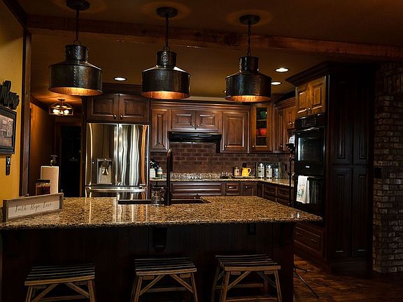 BEAUTIFUL RANCH HOME with 2,200. sq. ft. of living space,1,758. sq. ft. of partial finished basement and two car garage with 990 sq. ft. Covered porch has 716 sq. ft. with cedar post and acid stained concrete! This allows for lots of family time sitting around the gas fire pit or wired for TV entertainment. Also has a barndominium sitting on the property with 1,864. sq. ft. of living space,1,000 sq. ft. of warehouse space, loft space and 730 sq. ft. of shed space. Complemented with acid stained floors in living area! This stunning RANCH has solid hickory flooring throughout. You'll find beautiful solid wood cabinetry, quartz counter tops accented by a lovely copper farm house sink. Entertainment not a problem, has double oven in home with a second kitchen in the barndominium! This home is equipped with 2 authentic wood burning fireplaces with an additional vent-less propane fireplace made out of reclaimed barn lumber. Stunning scenic views from the covered porch! Country living at its finest and with the convenience of just being a few minutes from town. All sitting on +/- 15.35 acres. This property does have the option of being sold separately. Contact number is 859-200-6711 and ask for Janet.