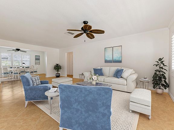 Location..Location. Ideally located across from R3 Clubhouse and Pool. Beautifully maintained Edgewood 2Br/2Ba with Florida room and enclosed porch. Freshly painted, and tiled thru -out. Kitchen cabinetry all replaced plus additional cabinets. Newer appliances including glass top range and French Door refrigerator. Both bathrooms totally redone with tile to the ceilings, custom vanities, commodes and glass enclosures. Interior doors changed out to six panels. All windows replaced plus accordion shutters. Interior white plantation shutters on all windows., Front porch has insulated roof for entertaining year-round. Double concrete decorative drive. Electrical panel inside and out replaced. Paid up recreation lease in full. A must see. Some rooms virtually staged in photos.