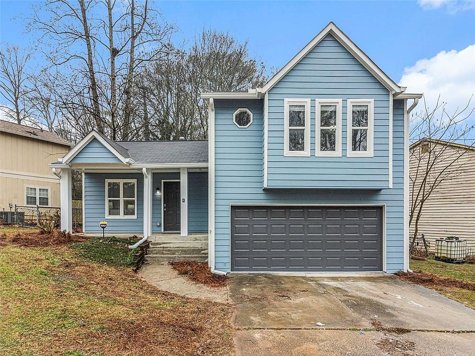 Lovingly modernized up with turnkey charm and nestled in a neighborhood that boasts convenience alongside a palpable sense of calm: that relays the spirit of this three-bedroom, two-bath split-level pretty nicely. Starting with the curb appeal, a nautically inspired contemporary blend of blue, deep gray and creamy white hues. Gabled, spit-polished, and utterly cozy. A few steps up, you're through the front door, where vaulted ceilings and wood tones play well with the flood of natural light (courtesy of a southern exposure). Alongside the dining area, the l-shaped kitchen has received some special TLC: plenty of counter space with new stainless appliances and bright white cabinetry. Check the stove, in particular. gas burning and solid as a rock; if you're a cook, that'll be your best friend. A few steps down, to the family area. The informal lounge-around space. We have a feeling the TV will go on the wall, right over there, above the fireplace. A perfect spot for nights home with your favorite streaming service and take-out. And, beyond the self-contained utility/laundry room, access to the fully finished (extended) one-car garage. Upstairs, a trio of bedrooms. If you're checking the floor plan, the first one at the front of the home is the best candidate for a dedicated home office. There's a pair of bathrooms, too: one is across the hall; the other is ensuite to the primary bedroom (which has some incredible vaulted ceiling action going on). Plenty of storage all around. Finally, the backyard. Already fenced in and dog-ready, with plenty of space beyond the patio to let the imagination run wild. A pool could be in the future. Or, a solid north-facing garden. Or both? With a straight shot to Covington Highway, the location offers access to the city and considerable local conveniences. You could not get a better design for your long-term use. So, if you're a ready-to-act buyer, call your agent today and submit your best offer because homes of this caliber at this price remain rare in this evolving market. Priced to bring immediate attention at $249,900; serious inquiries only.