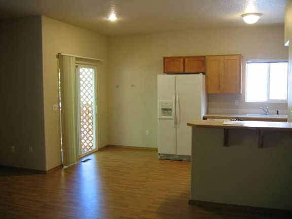 This home situated in a quiet community has a fabulous deck that looks out over a green space with trails. The main level has an open floor plan with laminate floors throughout. The kitchen features all appliances as well as an eating bar. All three bedrooms, two bathrooms, and the laundry room with full size washer and dryer are located upstairs. A/C, FP, an attached garage with automatic door opener, and a very low maintenance yard are what makes this home the one for you! One year lease, $45 screening charge, per adult. No Smoking. Ask about your pet. Vehicle limit of 2.