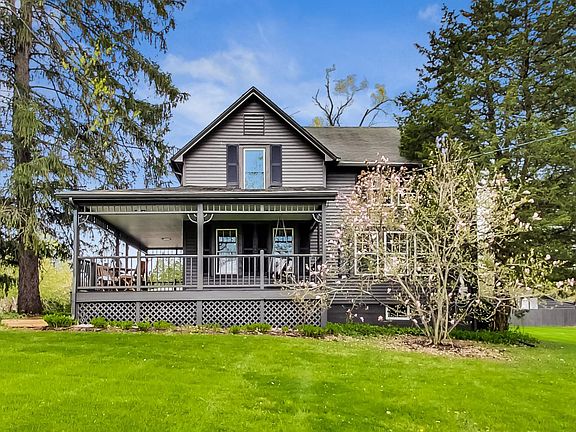 Charm abounds in this chic farmhouse. This property offers the best of both worlds as it's close to downtown Barrington while situated on an almost 2-acre parcel of land which offers terrific expansion opportunities should someone want or need. The home with its quintessential wrap around porch has 3 bedrooms and 3 baths and original hardwood floors throughout. The living room is filled with natural light and windows showcasing the beautiful outdoors with adjacent den separate by French doors that's a terrific home office. The dining room is large enough to accommodate any size table and has a charming hutch, large closet and bath adjacent to it. Gorgeous updated eat in kitchen with all new stainless-steel appliances, Butcher block countertops, subway tile backsplash and new lighting and hardware. Upstairs you will find 3 stylish bedrooms all and a new bath with double vanity sinks and mosaic tile. Enjoy the privacy from the tree-lined perimeter of this huge lot, with tons of space for entertainment, enjoy cozy evenings around the fire pit and family fun or room for your four-legged friends to run. Additionally, there are new fenced in raised garden beds and a 3-car garage to accommodate all your storage needs. Freshly painted exterior. Located near the award-winning Roslyn Road School, Prairie Middle School and Barrington High School and two sprawling parks and easy access to shopping and the Metra.