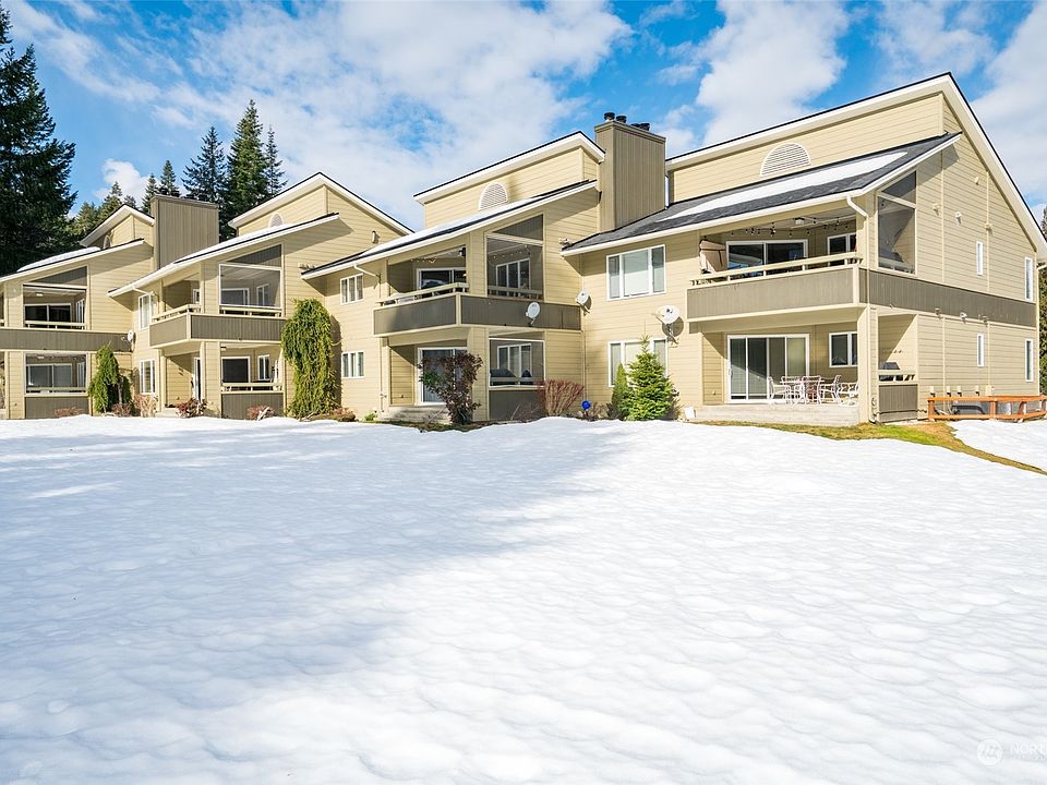 This ground-floor, end-unit condo in Kahler Mountain Club is your perfect winter recreation hub! Miles of groomed cross-country ski trails right from your doorstep connecting with the Lake Wenatchee State Park, plus snowshoeing, sledding hill, and ice-skating pond all within the community. 7 mile drive to Plain Valley Nordic Trails, 20 miles to Leavenworth, and 25 miles to Stevens Pass Resort. Spacious 2-bedroom, 2-bath floor plan with an open great room, fireplace, laminate hardwood floors, attractive kitchen, and covered patio fronting the golf course. Covered parking and level walkway to your front door, and locking storage closet for all your recreation gear. Don't delay, winter is right around the corner!