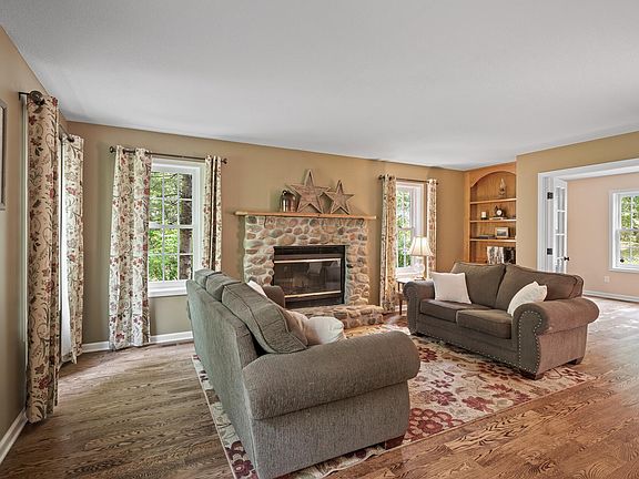 This PRE-INSPECTED (see supplements) gorgeous home is a perfect picture of serenity with six acres of privacy! The long winding driveway brings you to this colonial style house, featuring hardwood floors, a gourmet kitchen, three fireplaces, large windows inviting in the natural light, and a beautiful screened-in porch perfect for watching the wildlife. The rooms in this home are spacious and inviting, and there is new carpet and fresh paint throughout. The property has a large storage shed by the home with horse stalls inside (though horses are not allowed) and boasts tons of mature trees. Neighbors are close enough that you can interact, but still enjoy the tranquility and privacy that this large lot offers. Located in a great setting within the Lakeville school district and just minutes away from shopping and highways, this home is one you won’t want to miss!