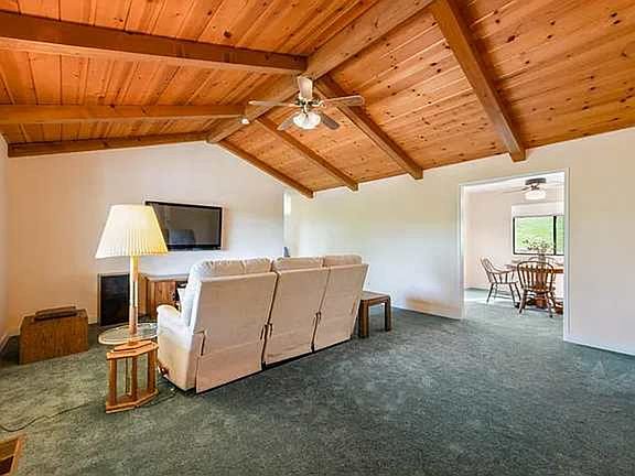 Perched atop a hill with beautiful views, this one level 3-bedroom, 2-bath home offers comfort, charm, and thoughtful updates throughout. Enjoy relaxing on the inviting front porch, perfect for taking in the peaceful surroundings. The spacious primary suite features two large closets and built-in storage, along with a private en-suite bath. Two additional bedrooms share a full bath, each offering generous closet space. The living room showcases wood ceilings and a warm, open atmosphere, while the dining area overlooks the backyard and flows seamlessly into the kitchen. The family room features a wood stove, direct access to the back deck, and a convenient entry to the garage. Recent updates include new carpet, interior paint, ceiling fans, doors, closet doors, and new blinds making this home move-in ready. The extra-wide driveway offers abundant parking, including a dedicated RV space with 110, 220, and water. The garage is pre-wired for an electric vehicle charging station. Lake Wildwood a gated community, offers a private 300-acre lake for boating and fishing, an 18-hole golf course, tennis and pickleball courts, swimming pool, a marina, clubhouse, 5 lakeside parks, trails, and year-round recreational activities. For more information or to schedule a viewing please contact Mary-ACM Prop. Mgmt.