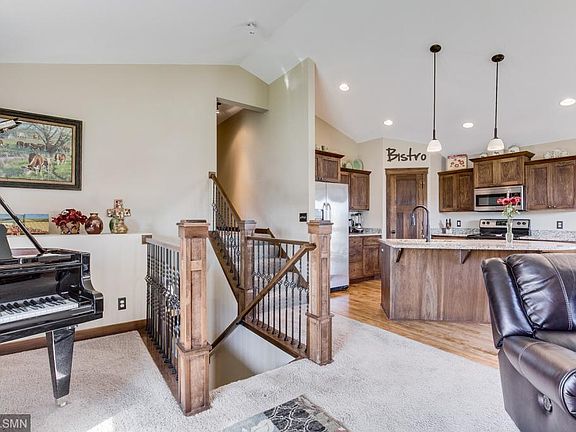 Former model, multi-level home w/ 4 levels, lower level finished 2017. Designed for both entertainment and family living. Granite counter tops, hardwood & ceramic tile floors, 3 panel maple doors, maple cabinets, & woodwork. 2 Patios plus deck, stamped concrete patio & driveway apron, new carpet in basement, heated insulated 3 car garage. Nicely landscaped yard, irrigation system. This is a beautiful 6 year old home in a very nice neighborhood on a quiet cul-de-sac. A must see!