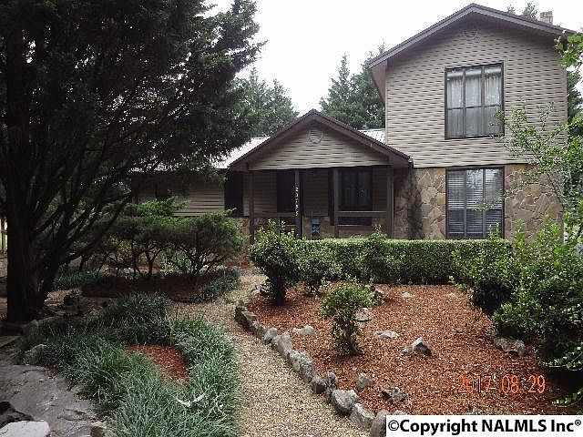 On .93 acre this masonry stone and vinyl home has two bedrooms on the main level and a large master suite up. Formal dining room and large living room with corner fireplace w. gas logs and hardwood floors. Two baths, one up. The three Bedrooms are all large size. New carpet in bedroom up, all others have laminate flooring. Eat-in kitchen with pantry, dishwasher, gas stove, ceramic tile floors. Formal dining room, and hallway has ceramic tile floor.Detached garage, workshop and gazebo. Special landscaping both front and rear.