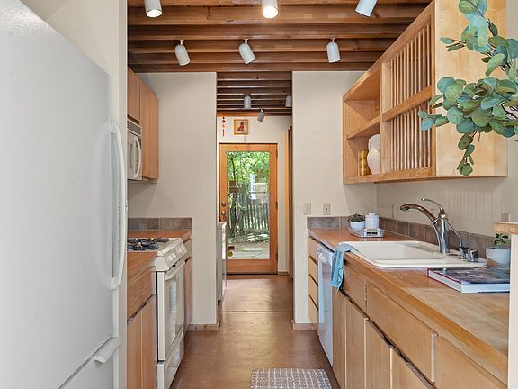 This loft style two-story, 1600+ sq ft well-lit masterpiece has two bathrooms & two bedrooms. A modern Northern New Mexico style, pitched roof and radiant heated stained concrete floors, three enclosed courtyard areas, a private deck off the Owners suite and an enclosed courtyard in front. The upstairs Owners suite has a full bath, with a garden tub, walk-in closet, and a private balcony. The downstairs bedroom and ¾ bath has a separate enclosed yard with access to its own parking. A private enclosed front yard gives access to the high ceilings with clerestory windows and lots of light. A studio (office or guest bedroom) with an enormous closet has its own patio with access to the second off street parking spot. The patio is lined with mature gardens and flowers, rose bushes and a covered portion to enjoy the outdoor air. The property in front of this one is also available and combined, this would make for a great multifamily situation. The access to 208A is off Webber and across from Wood Gormley school, and a short distance to Capitol Building, and Railyard or Plaza.