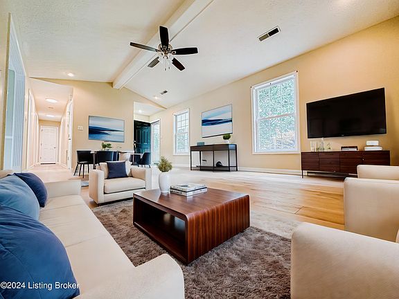 Perfectly located in the heart of Clarkson, this 3 bed/ 2 bath 1400 sq. ranch is less than a mile from WK Parkway! This home offers large living spaces, ample storage, an attached garage, fresh paint and new flooring. The primary suite boasts a large bath and walk-in closet, and outdoor living can be enjoyed on the huge covered front porch or back deck. The living room has a beautiful exposed beam at the height of the vaulted ceiling and recessed lighting, as well as a ceiling fan. All bedrooms have ceiling fans, and the country kitchen has lots of cabinets and counter space, as well as recessed lighting. Call this beauty home today!