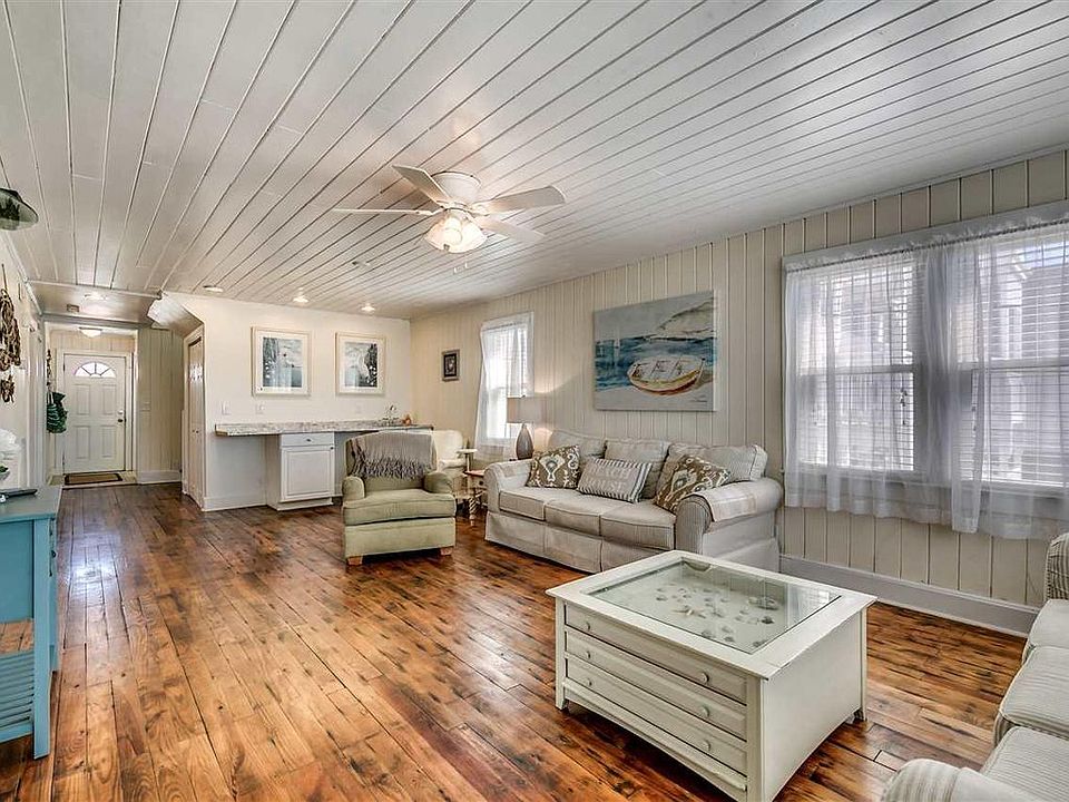 Fabulous home located only a few steps from the ocean. This home was located direct ocean front and moved to the present location in 2014. Completely renovated and brought up to current code standards this is a "new" house with a feel of the era past. Located just steps from the ocean, this cozy home has heart pine floors, walls, and ceilings which create a cozy "beach feel." With the 5 bedrooms and 4.5 bathrooms, there is plenty of room for everyone! Two family rooms- one on each floor and double balconies which offer a beautiful ocean view. The ground floor level offers a new salt water pool with a new outdoor kitchen. The outdoor shower is a huge convenience when returning from the ocean. Being sold fully furnished. All you need to bring is your toothbrush. Great opportunity for investment income or a wonderful private/vacation home.