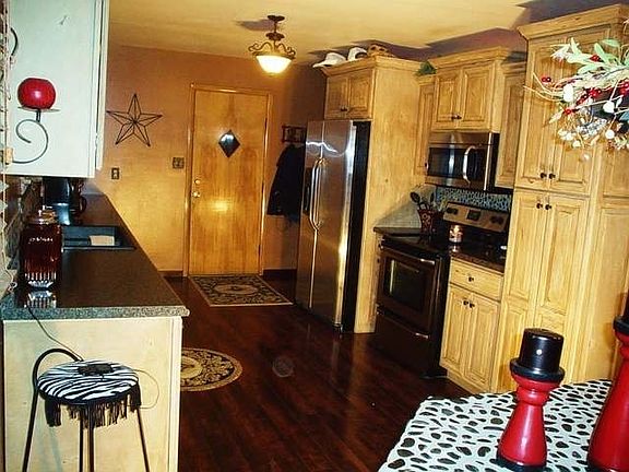 The WOW Factor here is HUGE! Nearly everything has been updated &/or had a facelift! Very solidly built ranch home with 3 bedrooms plus laundry on main level. Home has full basement with shower & stool, plus room for two or three n/c bedrooms & large family/rec room! The newly decorated kitchen has an abundance of cabinets, all new stainless appliances, new counter tops, sink, faucets, backsplash, island with snackbar & custom rock-top, light fixtures, & laminate flooring! The bath has a new tile shower, vanity, countertop, blacksplash, sink, faucets, tile flooring, toilet, & light fixtures! Living room received new wood blinds with custom window toppers, light/fan, & carpet. Bedrooms have new carpet, doors, & closet doors! The entire home, with its open,spacious floor plan, has been painted in delightful, restful earth tones & decorated in western motif! The exterior has steel siding, large yard, & beautiful evergreen trees! An oversized single garage is attached. Call today!