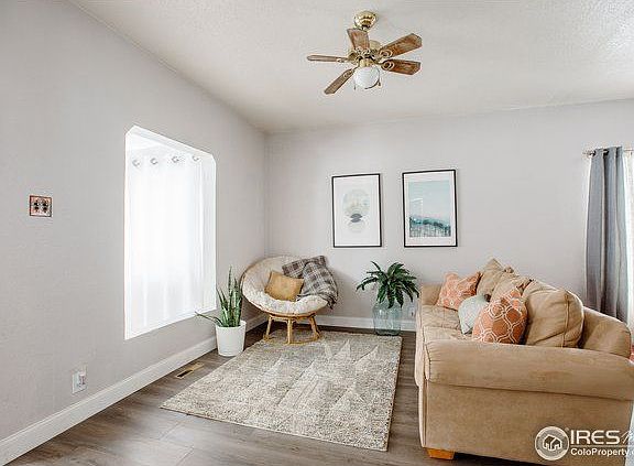 Adorable bungalow in the Town of Ault. Tiled sunroom as you enter into the LR/DR combo. New laminate floors throughout, quartz counters & new SS appliances in kitchen, stackable washer & dryer, recently painted inside and out, large master closet with ensuite bath, A/C, newer furnace and roof! Fully fenced back yard with sprinkler system, detached alley load garage, 16x8 storage shed and lots of room for RV/boat parking. USDA financing avail.