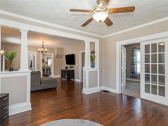This charming 2 story home in State Center is a perfect match for anyone looking for great usable space! 4 bedrooms, 3 upstairs and 1 on the main level. Main floor full bathroom with updated shower, flooring and new water lines. Updated kitchen with brand new counter tops, sink and island. Living room has new drywall. Main floor laundry room. Fenced in back yard with a built in fire pit, pergola over the deck and a detached 2 car garage! This home has so much to offer you don't want to miss it!