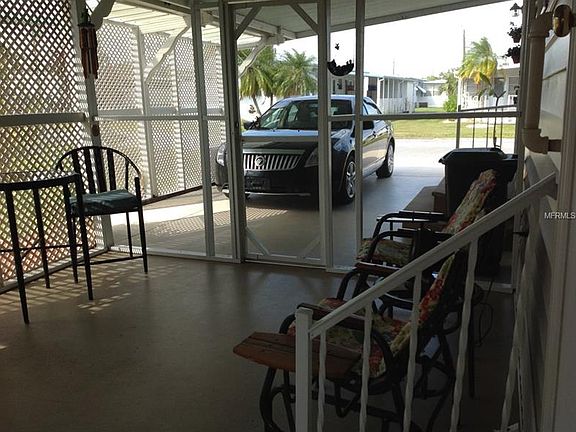 Move in condition, many upgrades in this two bedroom mostly furnished home, light and bright. Upgrades include: new windows, wood floors, walk in shower with bars for those needing assistance, new dryer, new doors, 3/4 inch plywood flooring, A/C 5 years new, new pipes from meter to unit, screened in patio. Extra large utility shed and additional shed as a workshop. Active community. HOA Fee $30.00 optional. Pet friendly 55+ community and convenient to shopping, bus stop and eating places.