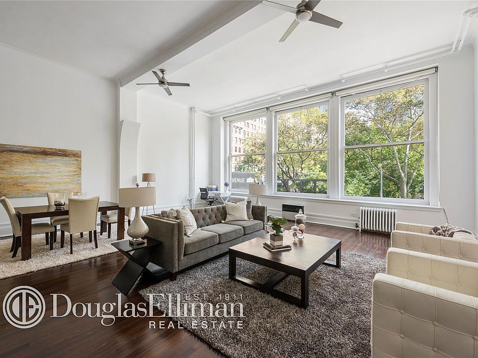 Spectacular Fifth Avenue loft with enormous windows and direct views of Madison Square! A graceful entry foyer leads to an enormous living room with towering fourteen foot ceilings and ten foot tall windows with sweeping park views. The large open kitchen has amazing cabinets, granite counters and stainless steel appliances. Upstairs, the generous bedroom overlooks the ballroom-like living room and has a large walk-in closet. An interior den is a great space for a home office or guest room. There's a private laundry room in the loft for your convenience. If you're looking for classic loft details, with a great sense of openness, it doesn't get better than this. 208 is a boutique building key-locked elevator with part-time superintendent. Located in the heart of the Flatiron District, Eataly, Fairway, Whole Foods and some of the best dining and shopping are literally right downstairs.