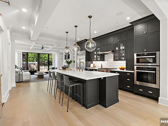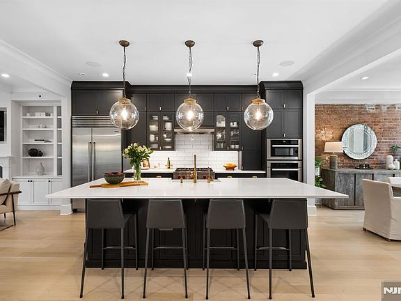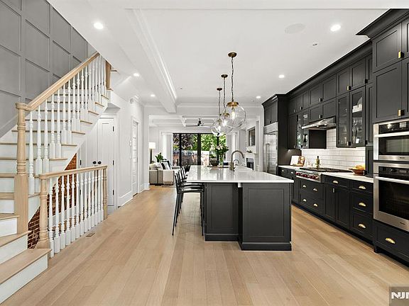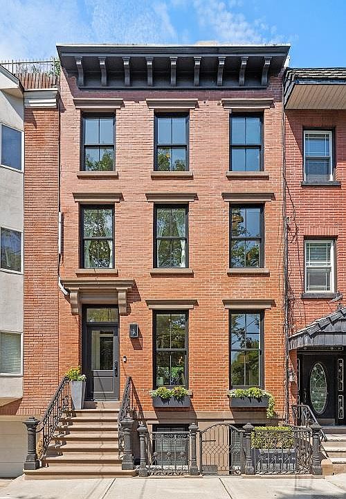 208 5th Street is 20 foot wide townhouse that offers five bedrooms, three and one half bathrooms over four full floors of living, located in one of Hoboken's most unique and desirable areas directly across from Church Square Park in midtown Hoboken. This large historic townhome has been completely gut renovated and extended and provides a thoughtfully designed layout with both formal and casual entertaining areas. The architect and designer have retained all the wonderful aspects of historic brownstone architecture and incorporated expert craftsmanship with a stunning design that perfectly blends modern and classic styles that will delight even the most sophisticated townhome buyer. No detail has been overlooked in the renovation of this stunning home. Entering the parlor floor through double doors and built-in mudroom you are struck by the open floor plan and the abundance of light that streams through the home from its southern exposure. The center of the home is anchored by a custom chef's kitchen with cabinets by custom cabinetry, quartz countertops, Wolf stove, Miele wall ovens, Subzero Fridge, Fischer Paykel dishwasher and wine fridge. The dining room features original exposed brick and floor to ceiling windows and the large living area has gorgeous coffered ceiling with a lovely gas fireplace flanked by custom built-in bookcases and storage. The exceptional layout is perfect for entertaining...