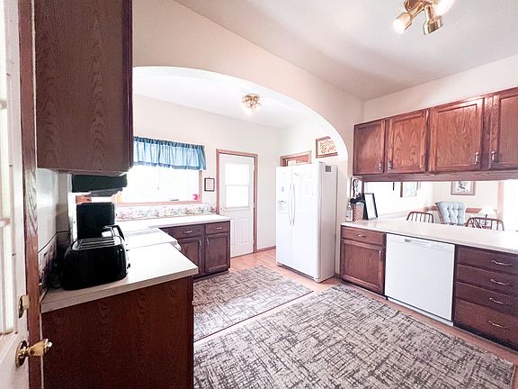 Small town living at its BEST. This home features a large lot, beautiful yard, a double attached garage, large deck and a great back yard hobby shed. This home has newer shingles in 2021 and includes all the appliances. The main level has a large kitchen with breakfast bar, dining room, living room and bedroom/den and laundry room with a full bathroom. Take a look at this peaceful setting and schedule your tour today. Showings start Tuesday the 24th at noon.