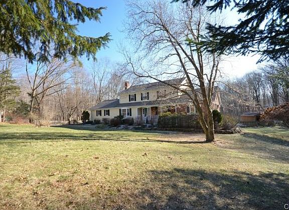 Lovely and well cared for Colonial with separate office, in-ground pool on 3 manicured acres in the center of Easton. This traditional home with recent updates and superb floor plan offers a cozy family room with stone fireplace, large eat-in kitchen with ample cabinetry, sunken year round sun room with vaulted ceiling, transom windows and skylight, Master bedroom suite with walk-in closet, 3 good sized bedrooms and walk-up attic. Newly refinished hardwood flooring complete this home. Attached separate office with half bath can be easily converted to in-law or au pair. Great in-town location close to all amenities and private.