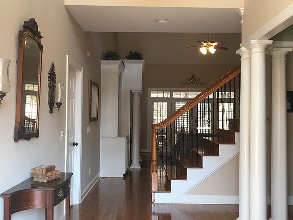 The two-story entrance of this custom built home welcomes you to a spacious open floor plan with vaulted ceilings, decorative columns and beautiful hardwood floors. Enjoy the master suite on main floor which opens to a separate sitting room/office. The spacious master bath has separate vanities and his and her walk-in closets. Upstairs includes three bedrooms or two bedrooms with a FROG, all with spacious closets and new carpet, a large walk-in attic and lots of additional storage. The outdoor living space overlooks an expansive backyard of green grass and mature trees. Relax on the screened-in porch or entertain on the spacious deck surrounding a gorgeous outdoor stone fireplace. Privacy and comfort at its best.