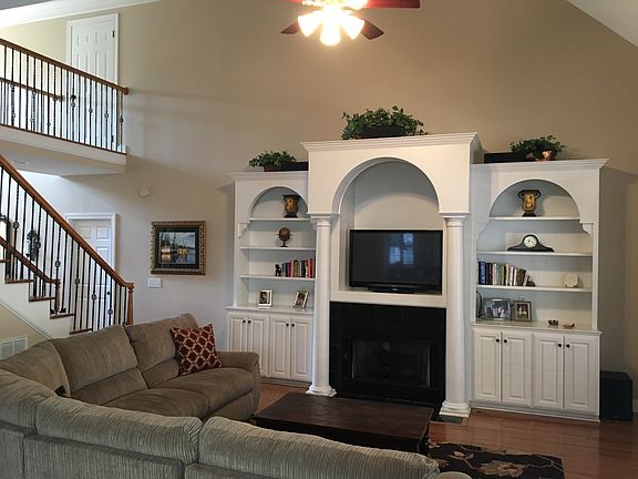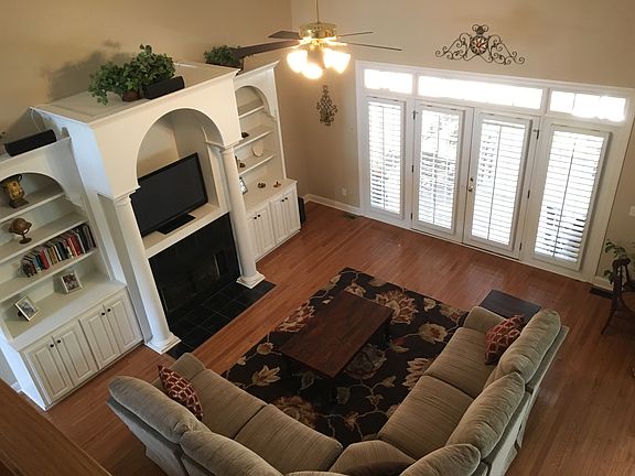 - Great Room: Molding, French Doors, Entertainment Center, Ceiling-Vaulted, Bookcase, Floors-Hardwood, Ceiling Fan, Recessed Lights
