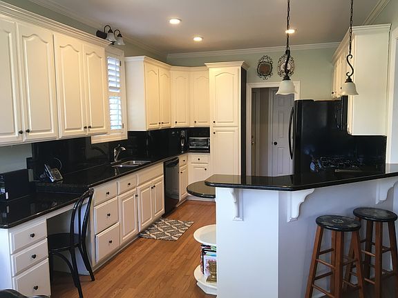 - Kitchen: Bar, Counter Tops-Granite, Eat In, Pantry, Floors-Hardwood, Cabinets-Painted, Recessed Lights, Backsplash-Granite