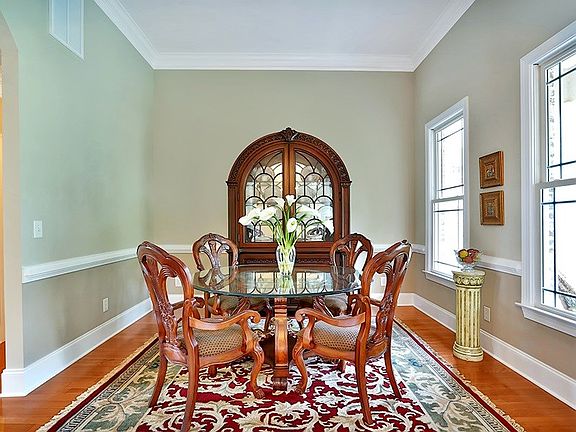 **6,370 sf** Beautiful mahagony double doors lead to marble foyer w/crystal chandelier, Frml sitting & dining rms, liv rm w/keyhole coiffured ceiling, fplace w/granite surround. Kitchen features cherry cabinets, lrg work surfaces w/exotic granite, curved brkfst bar, oversized brkfst rm w/lake view. Lrg mstr suite features vaulted trey ceiling, walk in closet, bath w/marble & granite heated floors, 6ft jetted tub, full tiled 5 head shower. 2 addt'l bdrms, full bath, half bath w/travertine pedestal sink, mud/laundry rm,complete main level. A full teen suite on 2nd level. Stunning terrace level -custom bar, full kitchen, 1.5 baths, 2 bdrms, family, rec, craft, theater, wine rooms! Custom touches throughout. Xl deck w/cable rails, huge patio overlooking lake!
