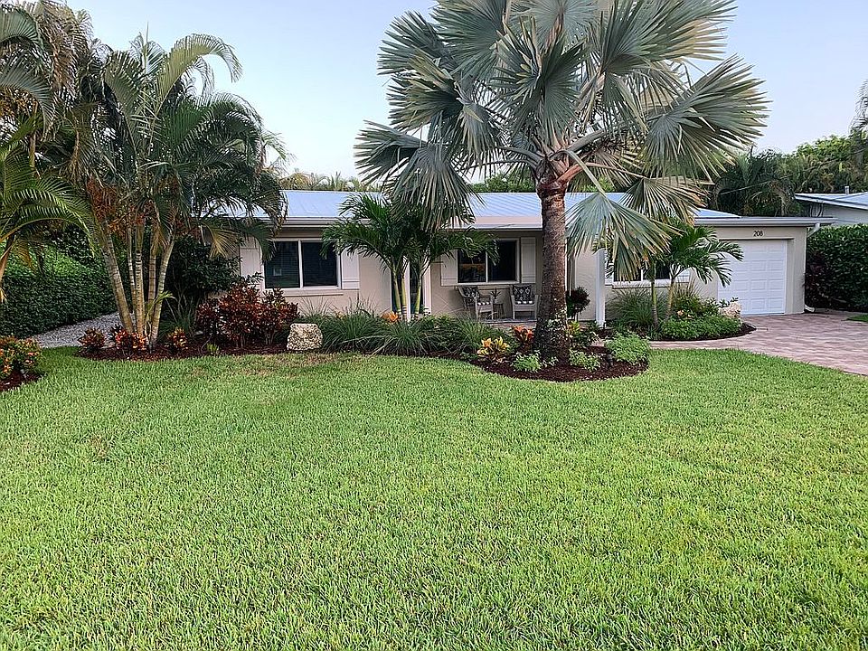 A little jewel on the Island, tucked away on a dead end street, this 3 bedroom, 3 bath home is totally remodeled. Having two split Master bedrooms is a plus for a rental or privacy for your guests. A major renovation was done 6 years ago and much more within past three years, including a new metal roof, Core-Tec vinyl plank flooring throughout, vinyl fencing, front pergola, new landscaping plus many other improvements (see list on MLS). Open living/ dining, with a large open kitchen, Shaker cabinets, quartz countertops and lots of storage. Beautiful, custom furniture in all rooms, within past 2 years. Epoxy floor and storage in attached garage. High end lighting and ceiling fans add to the overall ambience of this home. Sliders to the outside lead to the rectangular heated pool, surrounded by lush landscaping, giving you total privacy. Full glass door brings you to the covered porch with wood plank ceilings. This is the perfect place to get away from the sun, or relax with a good book, after your outdoor shower. Take a short walk to the beautiful beach or shops on Pine Avenue. If your tired from the day at the beach, take Anna Maria's free trolley that goes from one end of the Island to another. This home was a weekly rental before owners moved in as their primary residence. Similar homes on the street generate great income. Nothing to do but move in and enjoy this stunning home.
