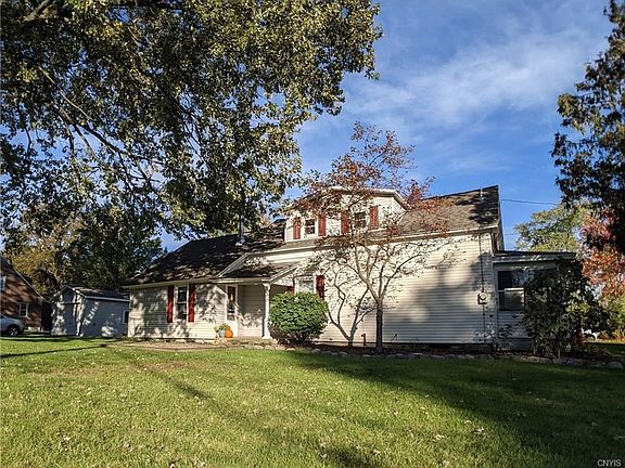 Pitcher Hill Home with lots of character! The eat-in kitchen welcomes you with a cozy Waterford wood stove. This large kitchen has a classic, country feel with charming details and a practical workspace. The freshly painted dining room features a beautiful stamped tin ceiling, wood floors and french doors leading to the living area. The first floor also has a full bath, home office and mudroom/laundry. The living room opens to a sunny three season porch. There are three upstairs bedrooms each with cedar closets, one of which leads to an attic space- so much storage! The main bedroom has a double closet and half bath. Both the house and detached garage have newer roofs & newly painted exterior trim and shutters! Convenient proximity to major highways and airport. The driveway to the home is on Elbow Rd. Showings begin Saturday 10/6.