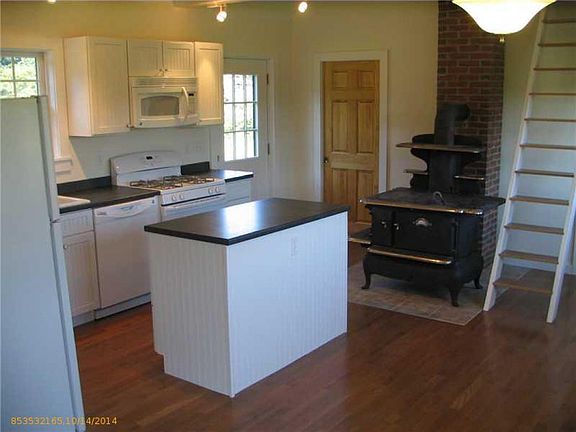 House looks antique but dates to 2000-2008. Beautifully finished w/hardwood floors, tile in bathrooms, kitchen with roomy bead-board cabinets, dishwasher, microwave, gas range, pantry, cathedral ceilings & ceiling fan. Small but beautiful.