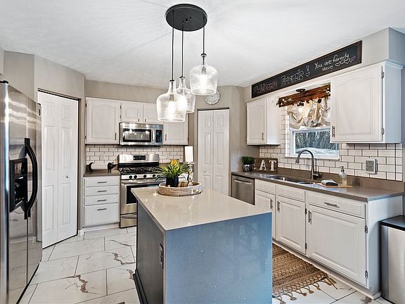 Just shy of .5 acres on a quiet street in Moon Twp. Stately brick front Colonial with space galore. Updates throughout all three levels. Soaring ceilings, newer flooring and updated lighting greet you in the foyer. Gorgeous kitchen features SS appliances, subway tile backsplash, modern waterproof flooring, 2 pantries and trendy fixtures. Sliders lead you out to the expansive maintenance free deck complete with awning. Oversized family room with large windows, crown molding, newer floors, and corner gas fireplace for the ultimate entertainment space. Nicely sized living Rm/ den, dining room and powder room complete the main floor. Owners Suite boasts soaring ceilings, newer floors, 2 walk in closets, and spa-like en-suite with dual sinks. 3 guests bedrooms and updated guest bath finish off the upper level. Head down to the finished lower level where you will find a full bath and updated game-room with office that walks out to the rear yard. Nicely sized garage for all your toys.