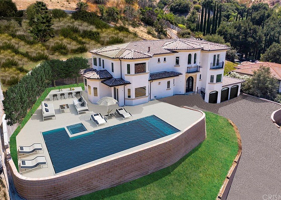 A long private drive leads you up to this carefully sited brand new Custom Estate situated atop its own private knoll creating the ultimate secluded sanctuary. Located in the prestigious community of Bell Canyon, this custom estate was constructed with no consideration to expense. You enter through the oversized double iron doors into the impressive foyer, the first thing you notice is the volume created from the soaring ceilings and windows that flood the house with natural light. The heart of this custom estate is the stunning designer kitchen featuring a center island, state of the art Thermador appliances, and amazing finishes. The family room offers fireplace, full sit-down bar, wine cellar, and walls of glass that open onto the outdoor verandas. The formal spaces provide huge areas to entertain guests with amazing architectural detailings found throughout. The main level also offers a comfortable library and private guest suite. Upstairs you'll find 3 generous sized secondary bedrooms all ensuite. The Master suite offers the perfect retreat with floor to ceiling fireplace, walls of glass that flood the suite with serene views, His/Hers walk-in closets and spa-like Master bath. The grounds offer amazingly private outdoor spaces that take advantage of the stunning Canyon views throughout. Entertain in the resort-style backyard complete with modern pool and jacuzzi with Baja shelf, water features, and BBQ area. A complete turnkey estate!