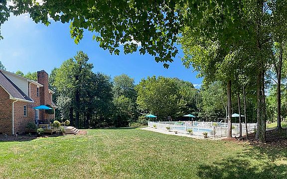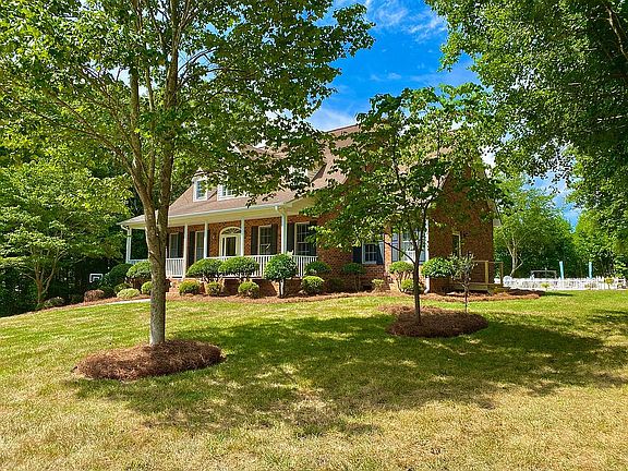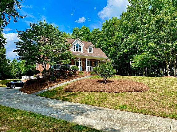All brick home at end of cul-de-sac in desirable neighborhood. Below ground pool with vinyl fence and covered front porch with swing. New wooden back and side patios overlook beautifully landscaped acre+ lot. Recently updated with fresh paint and new fixtures. Walk in closets in all bedrooms, and both baths have double vanities. Two car garage and unfinished basement. In excellent school district perfect for family!
