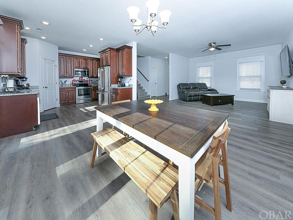 Like new construction, without the wait! This creekfront 4 bedroom, 3.5 bath home with a HUGE room over the garage features a downstairs primary bedroom, with a gorgeous bathroom AND a bedroom upstairs with en suite bathroom. With LVP throughout the downstairs area it is an open concept floor plan, with lots of natural light pouring in. The home has a fenced backyard with plenty of wooded area to explore, that goes all the way to the Areneuse Creek. The Areneuse Creek is navigable and spits out at the Pasquotank River, it is a great place for kayaks or canoes. The location within the subdivision could not be better, as it is right beside the community boat launch! Danson's Grant is a WONDERFUL Community, with a self-governed HOA, There are many events throughout the year and it is one of the most preferred neighborhoods on Halloween night! Top rated schools, delightful restaurants, historic areas, parks and public waterways are nearby, as is the USCG Base, Elizabeth City.