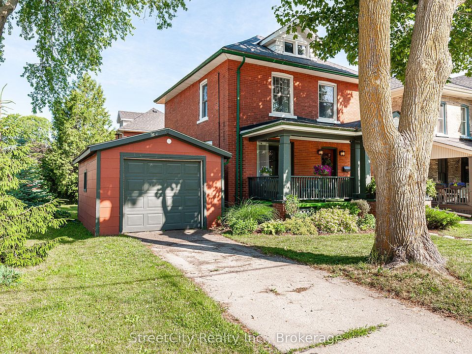 Quintessential Stratford 2.5 Storey Red Brick located in Hamlet Ward. The porch, the detached garage, the short walk to downtown. You will be ready to make this your home before you step foot inside. A welcoming foyer, with stairs to the second level, formal living room & dining room, spacious kitchen w/ ample cabinet & counter space, rear bonus room that can function as a studio, office, family or games room w/ adjacent 2 pc room. The second level holds 3 gracious bedrooms w/ closets and a stunning updated 4 pc bath w/ laundry & heated floors. A great unfinished walkup attic that could be transformed for a variety of uses. A great home in one of Stratford's most desirable locations. Call for more information or to schedule a private showing.