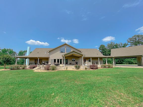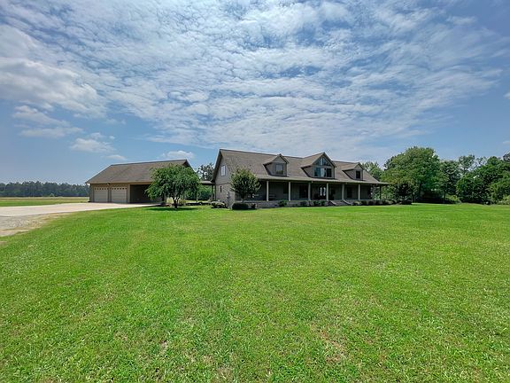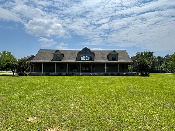 Look no further! This is a one of a kind, custom built home that sits on a beautiful 63 acres just a few miles from City Limits. The home build was completed in 2003. It has 50 year warranty shingles on the roof. It has a Geothermal heating and Cooling system. The property has a Fiberglass storm shelter located behind the 4 car garage/carport. The home boast a concrete porch that wraps around 3 sides of the structure. There is an outdoor kitchen area that is just steps away from entertainment on the porch or the living room! There is a fireplace in both the living room and the Master bedroom. The master bathroom features a Jacuzzi Tub and a massive walk-in Shower. Each of the 3 Bedrooms has walk-in closets. Upstairs there is a Bonus/Movie room, an overhanging reading nook, and a workout area. The kitchen is equipped with the commercial style sub-zero Refrigerator, and a commercial oven/ stove to match. Plenty of storage with a walk-in pantry and storage closets throughout the home. The 63 acres has managed pine timber, select cut hardwood Flat, pasture land, and a 5 acre lake with a peninsula. There is a dam on the lake that can control the water level. This is a very rare Property!! Don't miss out on your opportunity to purchase this home! MUST HAVEPRE-APPROVAL OR PROOF OF FUNDS TO SCHEDULE A VIEWING