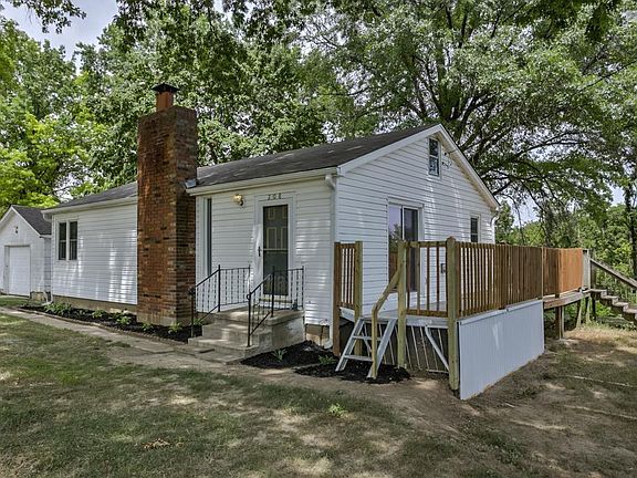 Just the right amount of seclusion just 10 minutes from Liberty and 20 minutes to downtown KC. Two bedroom, one bath ranch with wood burning stove in the living room. Large deck. One car detached garage with garage door opener and new roof. House roof is three years new. Large storage shed. Full basement offers lots of extra storage. Seller selling in its present condition, will make no repairs.