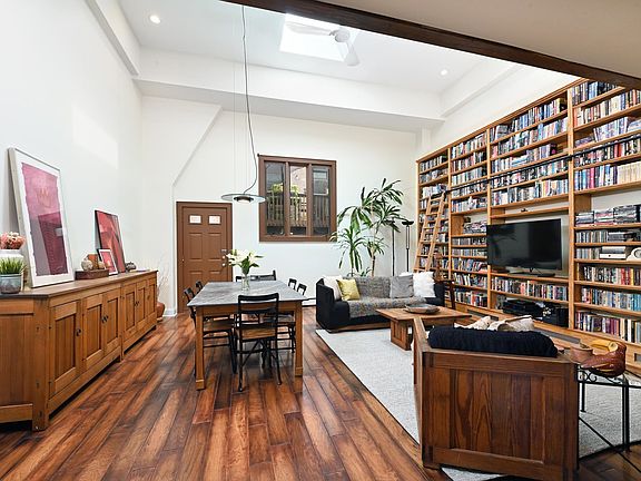 Step into this unique and spacious 1BD/2BA + den loft in desirable Hamilton Park, where 18-foot ceilings and custom floor-to-ceiling bookshelves create an inviting atmosphere filled with character and charm. This home features an open floor plan which includes a large kitchen with stainless steel appliances, counter seating and plenty of cabinetry as well as an expansive living and dining area perfect for entertaining or relaxing. Upstairs you will find a lofted primary bedroom, den which can be used as a home office or nursery, full bath and walk in closet, In unit washer/dryer, good natural light from big windows and 2 skylights and private outdoor space completes the package! Building has additional storage in the basement and condo rules allow you to build a rooftop addition and deck. Prime location with easy access to Path, shopping and dining.