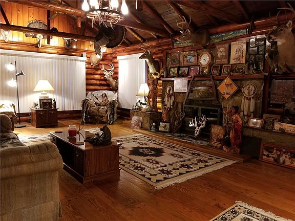 Beautiful, rustic, unique, log, stone, and vinyl sided home. Upon arrival you will immediately be struck by the stunning concrete drive, stone wall, sidewalk, and concrete steps. You then walk into the sun-drenched 3 season room with a spiral staircase. On the main level is the warm great room with a stone fireplace and gorgeous wood floors. The spacious kitchen has a back entrance to the large deck, level backyard, and pond. The master bedroom and ensuite, second bedroom, and full bath complete the main level. From the descending spiral staircase you will find the large family room with a brick fireplace and built-in shelving. The third bedroom which can also be an office or den area is nestled on this level along with the laundry room and third full bath. The garage is currently used as a workshop and has interlocking plastic tile flooring. There is an additional concrete parking pad accessible from Beachview Dr behind the home. There is also a 12x10 garden shed with a concrete floor